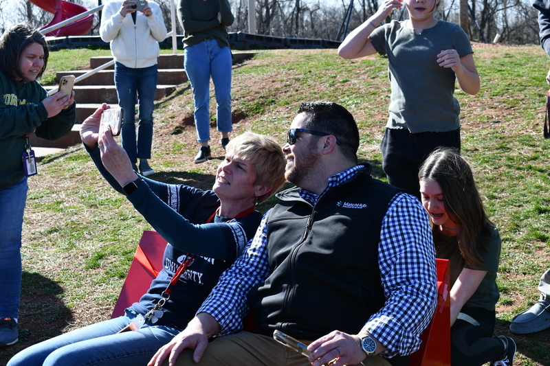At the ribbon cutting, the students were thrilled to see their idea come to life. Rendell, along with her FTB classmates and fellow former AGR SCA officers, Livia Castro, and Alex Lesicka, came back to their elementary school to be a part of the event. Hoy and Anderson both spoke at the event, commending the students for making a plan that would make a difference for the kids at the school, and then following through and making it happen. A.G. Richardson also expressed gratitude to the Castro family, who covered to the cost of the project and to community member Chuck Bates, who worked with Castro to build the benches.